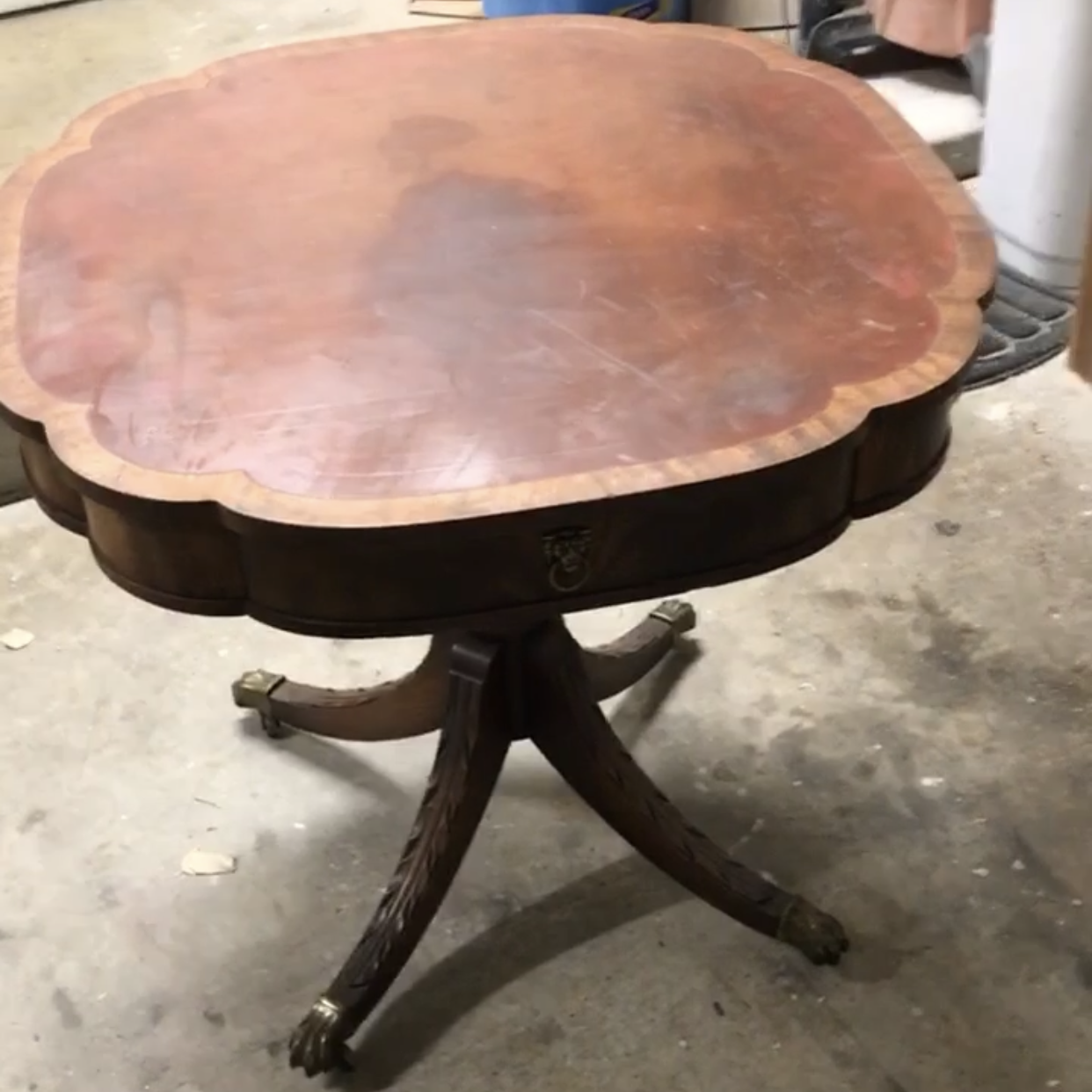 I spent days scouring Craigslist and FB marketplace for the perfect table that I could convert until I came across this one. It had the perfect ‘lounge’ vibes, and old fashioned details that suit the game perfectly, and the best part is that it was under $50.